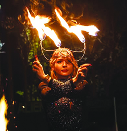 A member of the Blue Crow Fire Dancers performs with dazzling and daring elegance and elements of magic. (Photo courtesy/Frankenmuth Arts Council)