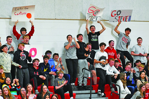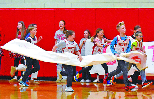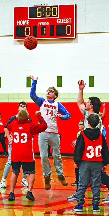 MARCH CRAZINESS IN THE E.F. RITTMUELLER GYM: The FHS Peer-to-Peer organization conducted its last basketball game in the gym on Thursday, March 26. The Peer-to-Peer students assisted the special needs students in a competitive and positive game of hoops for 50 minutes to end the school day. The kids raced up and down the court while the student body, staff and parents cheered them on. (News photos/Kelly Jammer)